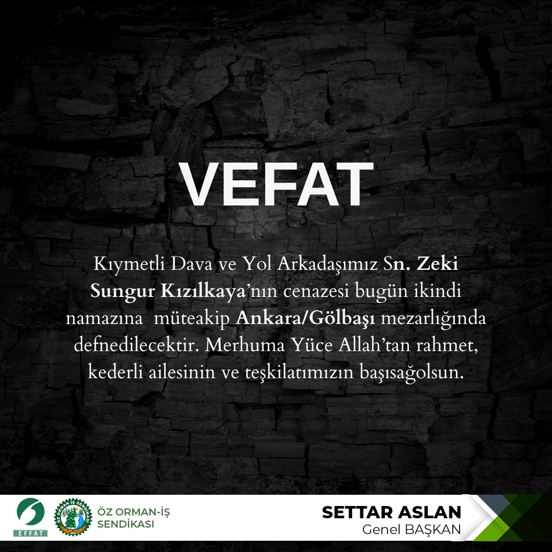 Yoldaşımız, kardeşimiz; görev yapmaktan onur ve gurur duyduğumuz sendikamızda Genel Teşkilatlanma Sekreteri olarak büyük bir özveriyle çalışan Zeki Sungur Kızılkaya’yı maalesef kaybetmenin derin üzüntüsünü yaşıyoruz.